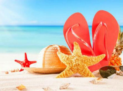 Vividly Printed Canvas: Our premium canvas, pre-printed with your beautiful "Pink Slippers in the Beach" design, features a sticky adhesive surface protected by a clear film, setting the stage for your creative journey.